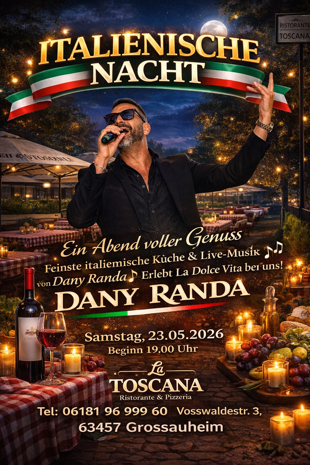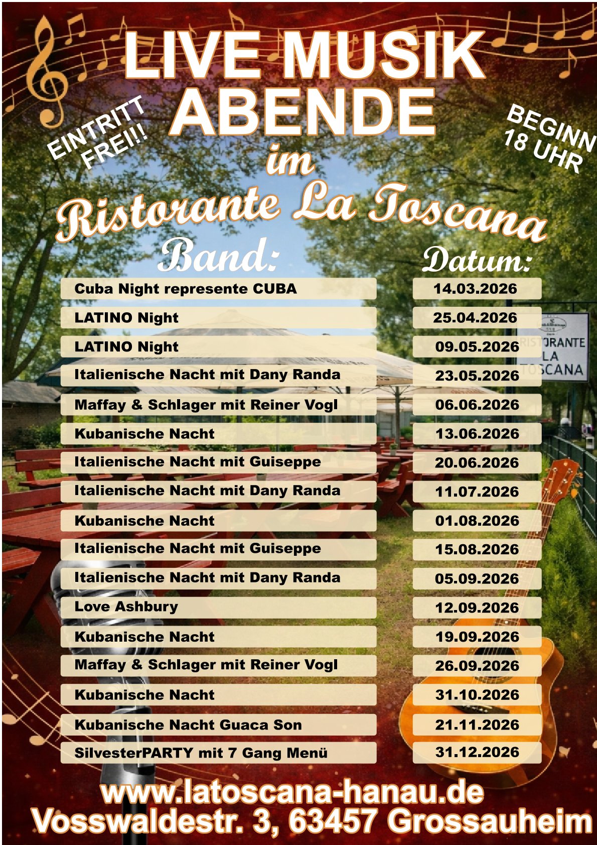 Geniessen Sie LIVE Musik im Zusammenspiel mit italienischer Gaumenfreude … bei schönem Wetter unter freiem Himmel!