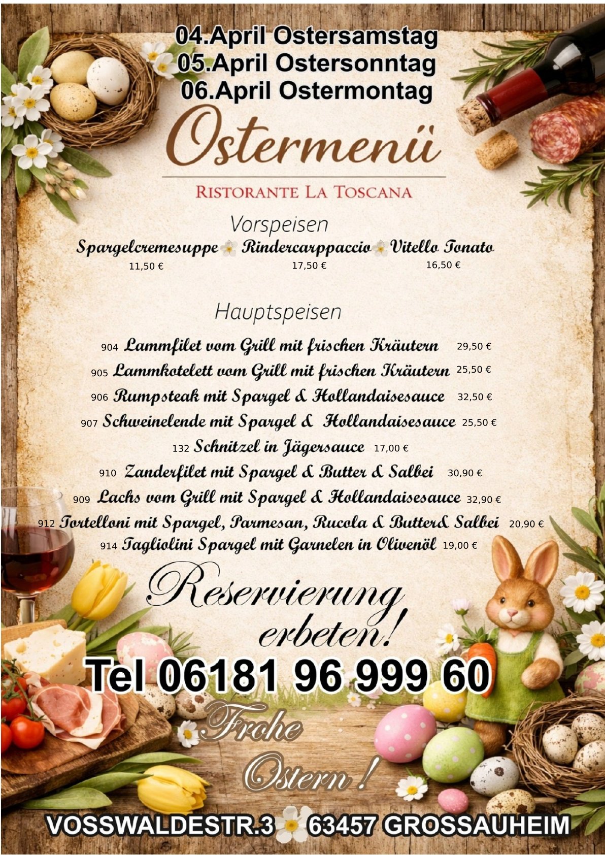 Reservierung erbeten unter 06181 96 999 60